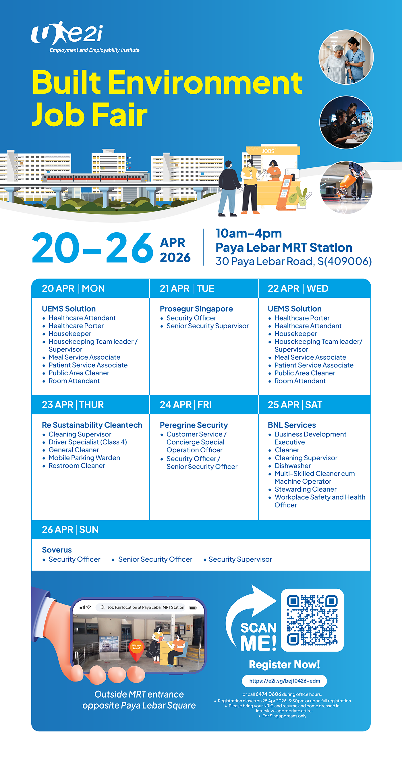 | Title : | e2i Built Environment Job Fair @ Paya Lebar MRT (20 to 26 April 2026) |