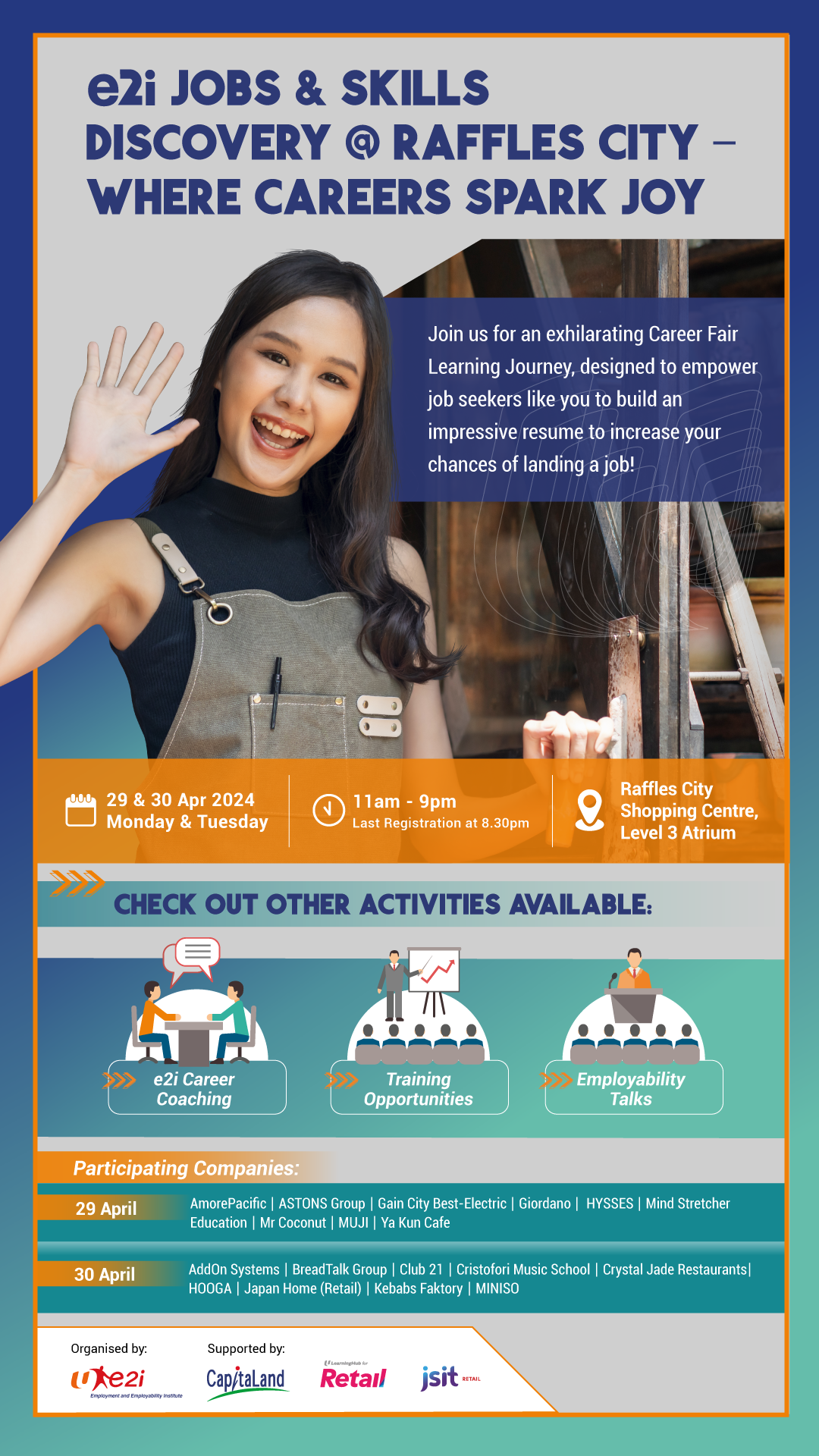 Join us for the upcoming e2i Career Fair @ Raffles City on 29 - 30 April.