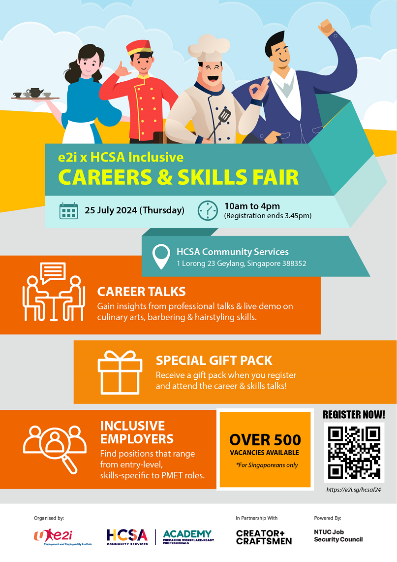 Open to the general public, this event supports a wide range of individuals, including but not limited to differently-challenged individuals e.g. ex-offenders, single parents, caregivers, back-to-work individuals, and anyone seeking new opportunities.