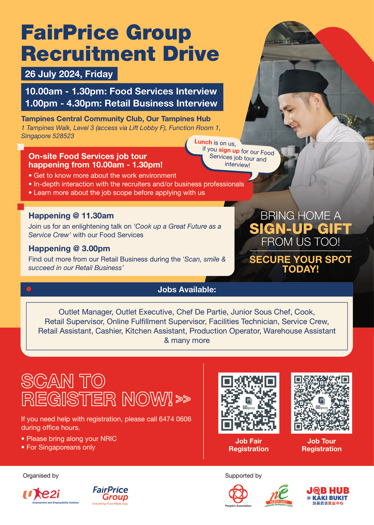 Join us in this upcoming recruitment event with NTUC FairPrice Group. Explore career opportunities with NTUC's Food Services and Retail Business now.