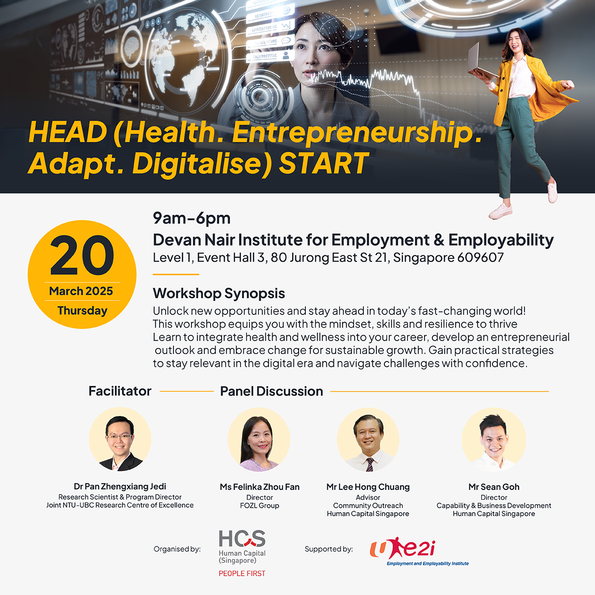 Unlock new opportunities and stay ahead in today’s fast-changing world! This workshop equips you with the mindset, skills and resilience to thrive. Learn to integrate health and wellness into your career, develop an entrepreneurial outlook and embrace change for sustainable growth. Gain practical strategies to stay relevant in the digital era and navigate challenges with confidence.