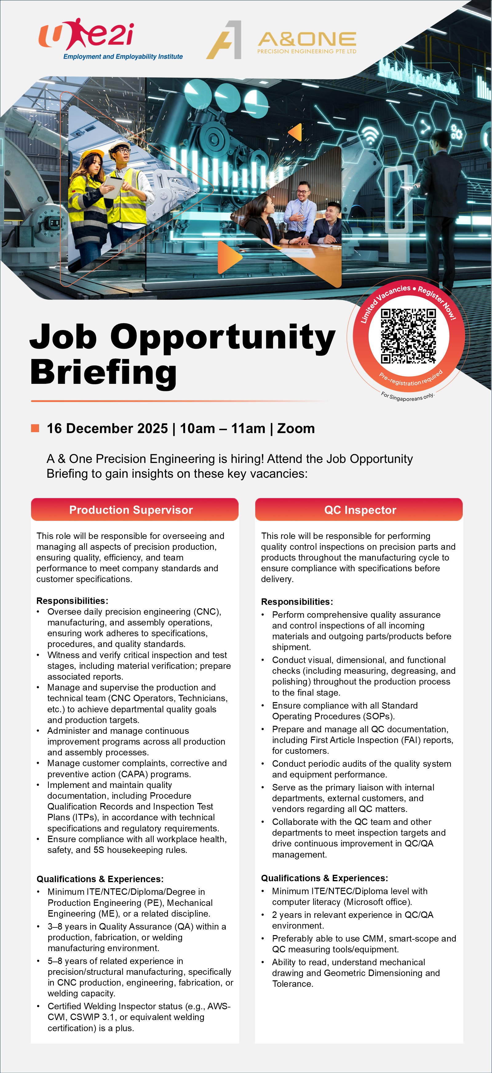 | Quality Inspector | - Manage and perform the Quality Assurance Control Parts and Products inspection